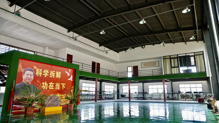 一期占地106畝,一期工業(yè)標(biāo)準(zhǔn)化廠房建筑面積25300平方米,全自動化拆解流水線一條,專業(yè)設(shè)備設(shè)施136臺件,年設(shè)計(jì)拆解能力為4.3萬臺輛,年破碎能力9.5萬噸,總投資2.63億元,是河南省以及周邊省市拆解企業(yè)的示范基地,標(biāo)準(zhǔn)化建設(shè)部分規(guī)則的制定者,廠內(nèi)種植四季花木,園林植被覆蓋率達(dá)百分之四十三,是花園式工廠。